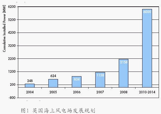 到2020年,英國可再生能源的發(fā)展規劃如下:1250萬(wàn)千瓦的陸地風(fēng)電場(chǎng)裝機容量;1150萬(wàn)千瓦的海上風(fēng)電場(chǎng)的裝機容量;300萬(wàn)千瓦的海洋可再生能源。