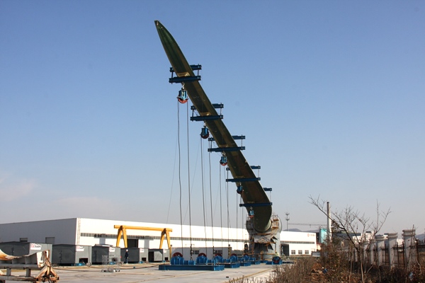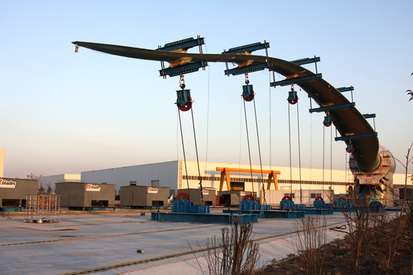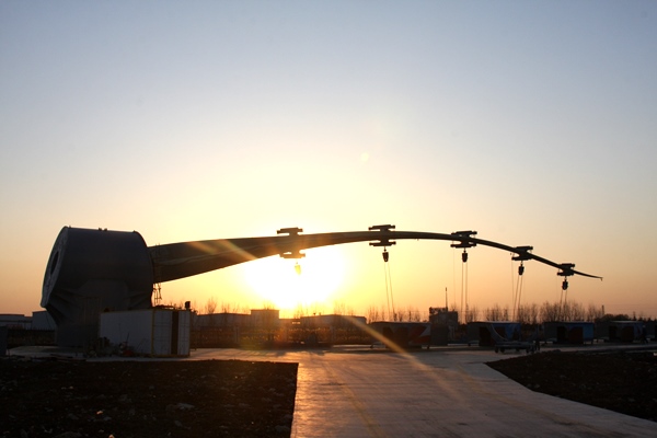 11月30日,中復連眾10兆瓦試驗臺正式啟用,順利完成首只62米、5兆瓦風(fēng)機葉片靜力試驗。