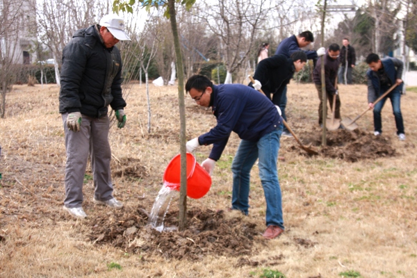 3月14日,中復連眾啟動(dòng)一年一度的植樹(shù)綠化活動(dòng),來(lái)自行政部、財務(wù)部、信息管理部等部門(mén)的三十余名黨員干部和積極分子在董事長(cháng)任桂芳的帶領(lǐng)下,共同在和諧園栽種了一批女貞、紫葉李和木槿等苗木,此前在和諧園栽種的樹(shù)木全部成活,長(cháng)勢良好。在植樹(shù)的同時(shí),大家又給園內的其他樹(shù)木進(jìn)行了澆水、圍土,揀除園內雜物,進(jìn)一步美化廠(chǎng)區環(huán)境。