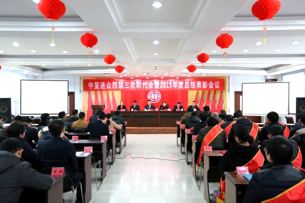 吉羊逐云辭舊歲,金猴獻瑞喜迎新。1月28日,中復連眾召開(kāi)四屆三次職代會(huì )暨2015年度總結表彰大會(huì )。會(huì )議傳達了中國建材集團、中國復材集團2016年工作會(huì )議精神,表彰先進(jìn)、交流經(jīng)驗,回顧總結了公司2015年經(jīng)營(yíng)管理和工會(huì )工作,部署安排了2016年各項任務(wù)??偨?jīng)理喬光輝作了題為《凝心聚力 共克時(shí)艱 推動(dòng)公司質(zhì)量效益再上新臺階》的年度工作報告。本次會(huì )議采取職代會(huì )與總結表彰大會(huì )“套開(kāi)”形式舉行,提高了會(huì )議效率,實(shí)現節儉辦會(huì )。職工代表、中層以上管理人員、部門(mén)代表共計140余人出席會(huì )議。會(huì )議由副總經(jīng)理南洋主持。
