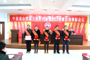會(huì )議還隆重表彰了中復連眾2015年度10個(gè)先進(jìn)集體、2名標兵和76名先進(jìn)個(gè)人,表彰了“超大口徑純玻璃鋼管道鎖緊接頭的研發(fā)”、“輥涂工藝實(shí)施”等34項科學(xué)技術(shù)獎。