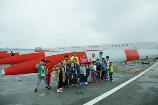 上午九點(diǎn)鐘,雖然天空飄著(zhù)零星細雨,小朋友的熱情卻很高漲。大家統一乘坐大客車(chē)來(lái)到連云港葉片工廠(chǎng),參觀(guān)一分廠(chǎng)、二分廠(chǎng)的辦公區域,葉片貨場(chǎng),檢測中心和12兆瓦試驗臺。大人們平時(shí)司空見(jiàn)怪的風(fēng)景,在小朋友充滿(mǎn)好奇的眼里,一切都變得不同。一只只巨大的銀色葉片,靜靜地躺在貨場(chǎng)上,像一架架等候起飛的飛機;12兆瓦試驗臺,兩只正在進(jìn)行加載試驗的葉片,像一個(gè)巨大的變形金剛,抖動(dòng)著(zhù)翅膀,隨時(shí)準備變身。