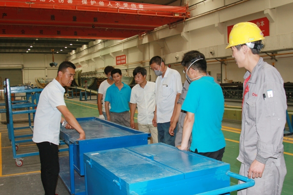 連云港葉片工廠(chǎng)工段長(cháng)董文韜介紹了19號線(xiàn)在精益6S管理工作開(kāi)展過(guò)程中遇到的問(wèn)題和采取的措施。由于19號線(xiàn)是樣板區和參觀(guān)區,基礎條件較好,精益6S管理工作開(kāi)展初期,員工有較強的優(yōu)越感,工作不深入、不主動(dòng),兩次綜合檢查不達標。面對現實(shí),在咨詢(xún)老師和精益辦的幫助下,19號線(xiàn)全體員工重新審視自己的工作態(tài)度,深度參與,成效顯著(zhù)。在改善提案征集活動(dòng)中,19號線(xiàn)申報了抽氣管存放箱、浸布臺車(chē)、物品擺放架等改善提案并在車(chē)間加以實(shí)施,大大提高了工作效率。