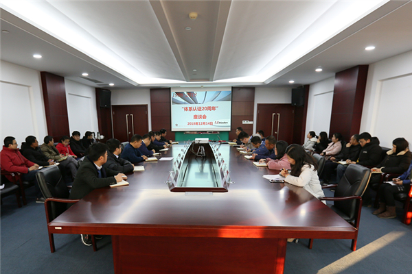 2018年12月14日,中復連眾召開(kāi)體系認證20周年座談會(huì )。公司副總經(jīng)理王彤兵、劉衛生,企管部經(jīng)理楊懿忠及參與體系認證創(chuàng )建、建設、發(fā)展等各階段的親歷者代表出席會(huì )議。會(huì )議明確了公司體系建設發(fā)展思路,激發(fā)了大家對體系建設的工作熱情,為下一步體系建設工作的有效開(kāi)展打下了堅實(shí)基礎。