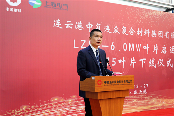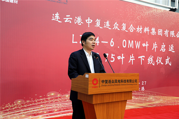 連云港經(jīng)濟技術(shù)開(kāi)發(fā)區黨工委副書(shū)記、常務(wù)副主任胡傳宏希望中復連眾集團以84米葉片啟運、B75葉片下線(xiàn)為契機,堅持走自主創(chuàng )新的發(fā)展道路,不斷釋放創(chuàng )新創(chuàng )造潛能,推動(dòng)企業(yè)打造國內領(lǐng)先、亞洲一流的風(fēng)電裝備制造基地。