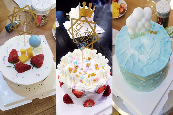 蛋糕烘焙對于公司女員工來(lái)說(shuō)是一項全新的體驗,大家興致勃勃,在專(zhuān)業(yè)烘焙師傅的指導下,按照腦中構思已久的造型進(jìn)行制作。大家相互幫助、相互贊美,打奶油、裱花、裝飾……每個(gè)人忙得不亦樂(lè )乎,經(jīng)過(guò)近兩個(gè)小時(shí)的時(shí)間,一個(gè)個(gè)創(chuàng )意十足的作品展現在大家的眼前。