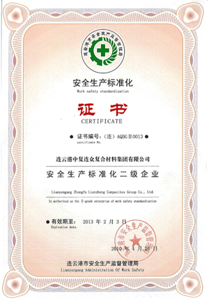 4月30日,在全市安全生產(chǎn)標準化工作會(huì )議上,中復連眾作為我市首批通過(guò)安全生產(chǎn)標準化驗收的企業(yè)之一,被授予“安全生產(chǎn)標準化二級企業(yè)”證書(shū)及銅牌。