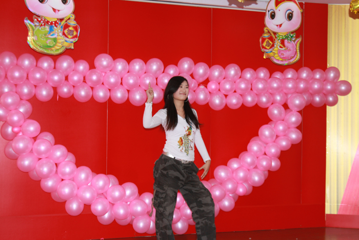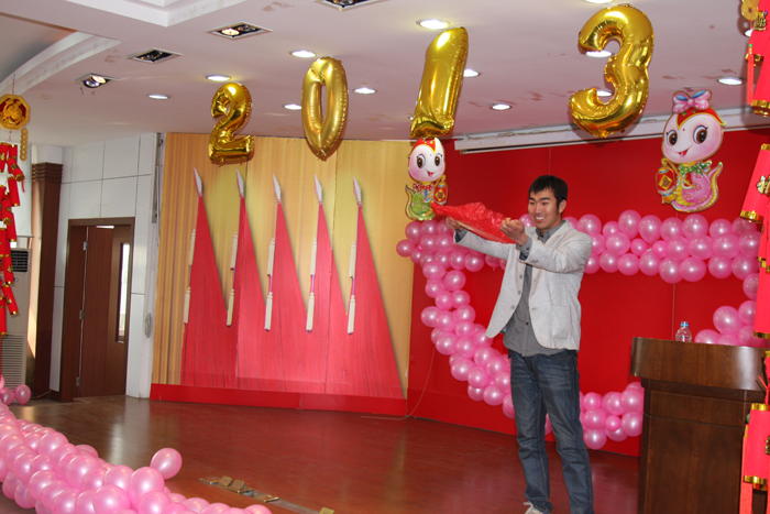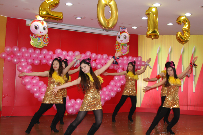 聯(lián)歡會(huì )在管罐營(yíng)銷(xiāo)部范賢浩MJ獨舞《DANGEROUS》中精彩開(kāi)幕,掀起一個(gè)小高潮;信息管理部周福超一曲《青花瓷》委婉動(dòng)聽(tīng),帶我們感受中國風(fēng)的魅力;范賢浩和信息部張哲寧踏著(zhù)《Dreams come true》的節奏,給觀(guān)眾不一樣的精彩;管罐營(yíng)銷(xiāo)部陳冠升傾情演繹了劉歡《我和你》、楊坤《無(wú)所謂》和汪峰《我愛(ài)你中國》經(jīng)典歌曲,模仿精彩到位、惟妙惟肖。贏(yíng)得全場(chǎng)最高分貝尖叫的當屬財務(wù)部蘇茗茗,她的獨舞《十分鐘》,揮灑自如,酷勁十足,新一代 “舞后”應運而生;葉片營(yíng)銷(xiāo)部王睿妍、管罐國際部吳瑜和范賢浩分別帶來(lái)了德文歌曲《即使在雨中》、俄文歌曲《喀秋莎》和韓文歌曲《大長(cháng)今主題曲》,讓我們感嘆中復連眾真是藏龍臥虎地;功夫不負有心人,經(jīng)過(guò)一個(gè)多月的辛苦排練,黃偉、潘慧等六位美女的舞蹈《SMILE》,終于贏(yíng)得了陣陣喝彩;郭偉、孫誠的歌曲《溫柔》,配合默契,唱功一流;由李成威、劉世民、譚倩倩、張丹表演的《拜年》講述了一對小夫妻回家拜年的爆笑經(jīng)歷,笑料十足;聯(lián)歡會(huì )在《恭喜發(fā)財》中落下帷幕。