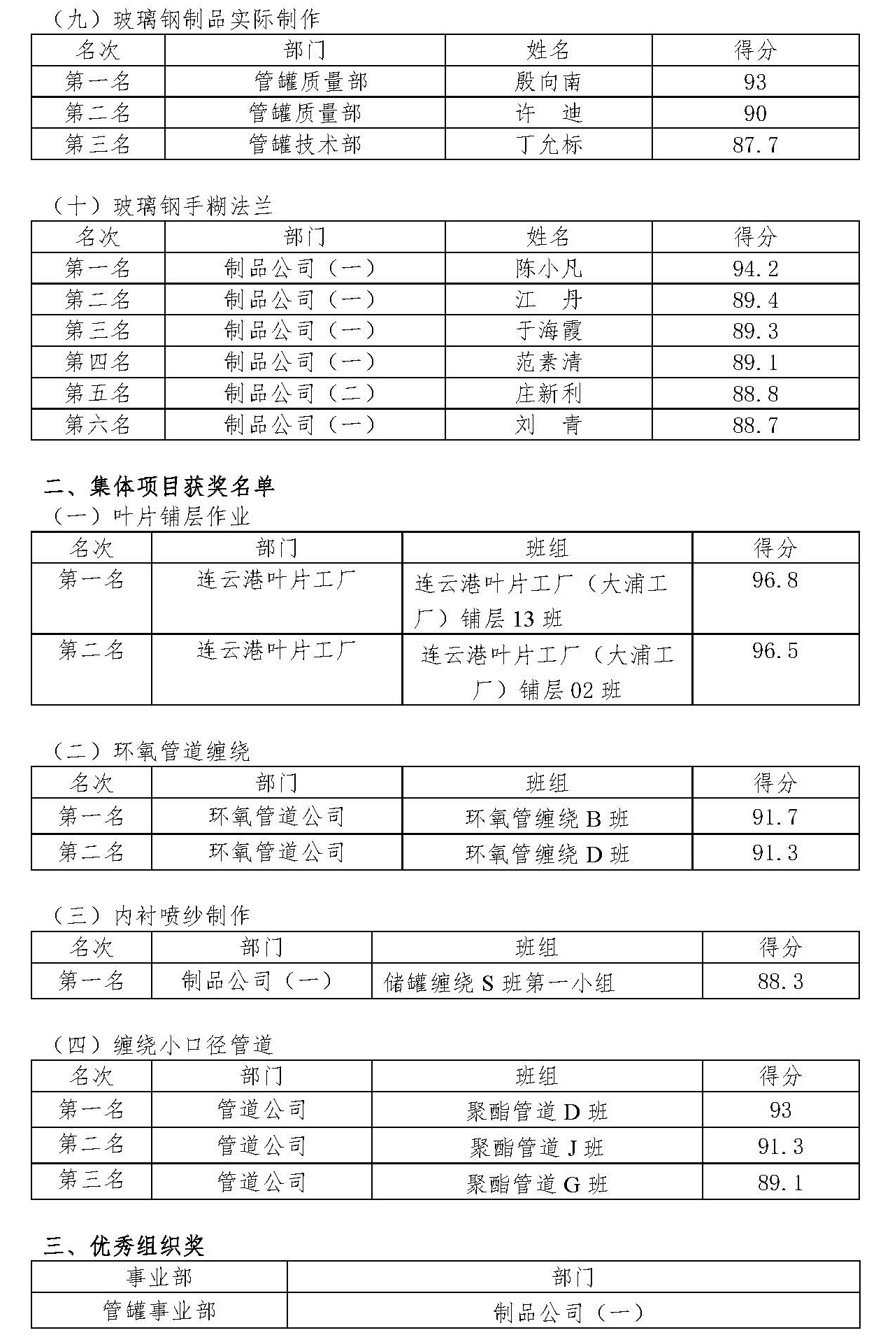 一是特色活動(dòng)有創(chuàng )新。公司今年積極爭取并成功承辦了全市玻璃鋼制品工職業(yè)技能競賽項目——玻璃鋼手糊法蘭項目和纏繞小口徑管道項目。作為連云港市級一類(lèi)職業(yè)技能競賽項目,成績(jì)優(yōu)異者將被授予市級榮譽(yù);作為中復連眾多年必辦的員工技能競賽項目,有助于強化玻璃鋼制品高技能職工隊伍建設;此次競賽項目按照市級技能競賽一類(lèi)標準籌辦,在豐富辦賽內涵的同時(shí),也積累了辦賽經(jīng)驗,為今后競賽活動(dòng)和生產(chǎn)活動(dòng)高度契合打下基礎。